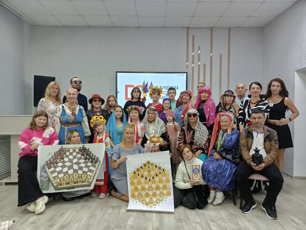 Для того, чтобы облегчить процесс запоминания, присутствующие решили воспользоваться простейшими приёмами мнемотехники: сразу запомнили на слух цифры 4 (арба, повозка на 4 колёсах), 5 (хамса, рыба Чёрного моря), 8 (таманья, Тамань - полуостров в Краснодарском крае). Ну, а потом началась сама лекция "Волшебная доска". Почётный гость храма книг поделился с анапчанами историей развития шахматного и шашечного спорта. В этом ему помогали присутствующие: интересные факты по теме поведали член Анапского ВОСа Лора Сергеева и путешественник Алексей Усов. По одной из версий, начал Махир Рауф, прародителем современных шахмат считается игра чатуранга. Она зародилась в Индии примерно в VI веке нашей эры. Игра символизировала боевые действия четырёх родов войск: пехоты, кавалерии, слонов и колесниц. Есть и другие версии, но все присутствующие сошлись в одном: приблизительно в одно и то же время своя версия шахмат появилась одновременно в нескольких государствах, каждое из которых внесло свои штрихи в эту незабываемую спортивную игру! Существует несколько редких видов шахмат, которые отличаются правилами, расстановкой фигур или особенностями доски. Среди них шахматы Фишера, русские четверные шахматы с крепостями, готические шахматы и шахматы 960. Шестиугольные (гексогональные) шахматы - это группа вариантов шахмат, в которые играют на досках, состоящих из шестиугольников клеток. Наиболее известен вариант Глиньского, в который играют на симметричной шестиугольной доске с 91 клеткой...