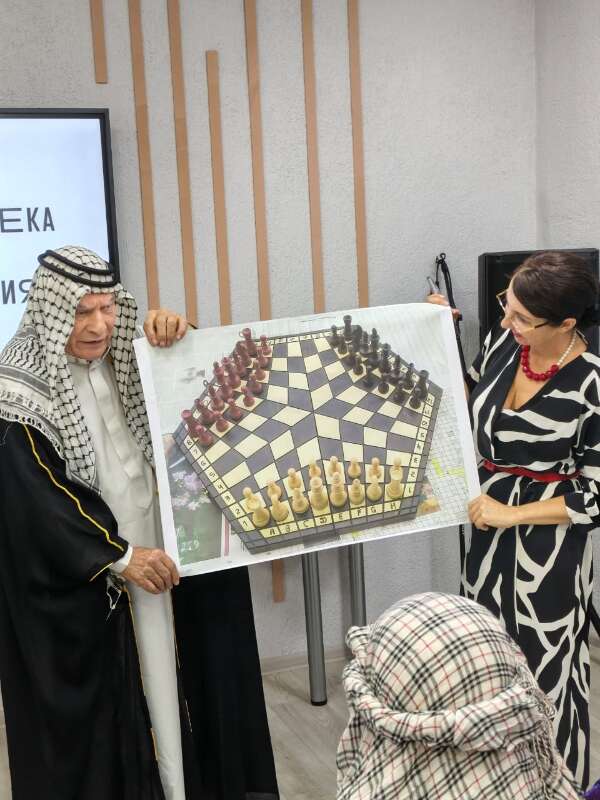 У Валентина Распутина есть произведение "Уроки французского". Писатель хотел обратить внимание читателей на уроки доброты, которые преподала учительница главному герою. В Анапе 4 октября, в рамках декады пожилого человека, состоялись "уроки арабского" . Основная мысль - та же: уроки доброты, толерантности, принятия ближнего, ведь конференц-зал библиотеки-филиала 1 им. В. И. Лихоносова в Анапе собрал не только пожилых людей, нуждающихся в заботе и опеке, но и людей разного возраста, включая молодёжь с ОВЗ (члены Анапской МО Всероссийского общества слепых, спортсмены Федерации адаптивных видов спорта Анапы, воспитанники благотворительного фонда "Капельки добра"). Лекцию по истории шахмат и шашек "Волшебная доска" прочитал преподаватель арабского языка, известный шахматист, шашист, востоковед, психолог Махир Рауф Данхаш абд аль Фаттах Сулейман аль Саффар, которого встретили по русской традиции хлебом-солью. Восточного гостя встретила делегация активистов клуба "Ветеран", а это руководитель театральной студии "Акцент" Любовь Шамина, добровольцы "Ветерана" и Анапской МО ВОС Нина Зорина, Елена Панова, Анна Вороная, Галина Афанасьева и другие. Гость из Краснодара, уроженец Ирака, Махир Рауф поведал о традициях при встрече гостей на его Родине: арабы угощают странников кофе особого сорта для поднятия аппетита! Отметим, что многие участники мероприятия были в национальных костюмах. Анапчане - в русских национальных нарядах и даже в одеяниях с элементами восточной одежды, дабы поддержать дорогого гостя. Так, танцовщица Нина Жабская выступила в библиотеке в великолепном костюме, который они с мамой приобрели в Египте. Махир Рауф был в национальном костюме, который арабы надевают во время особых торжественных случаев: приёмов, официальных визитов, дипломатических миссий, свадеб: на нём была кандура или дишдана, длинная рубаха до щиколоток, с длинным рукавом, традиционно белоснежная. На голове дорогого гостя был пустынный платок (шемаг, арафатка), игаль - обруч, который удерживает гутру-платок на голове (выглядит, как толстый шнур чёрного цвета). Бишт - это длинный халат или накидка, его используют поверх кандуры. Помимо этого в зале была восточная атрибутика: лампа Алладина, которую предоставил библиотекарь специальной библиотеки для слепых им. А. П. Чехова в Краснодаре Дмитрий Селеменев. Стол украшали оригинальные издания сказок из серии "Тысяча и одной ночи". Костюмы и реквизит предоставила театральная студия "Акцент" (клуб "Ветеран"). Поддержку во время организации мероприятия оказали библиотекари филиала 1 библиотеки им. В. И. Лихоносова Елена Нещадимова и Елена Вакуленко. Во время встречи в библиотеке прошёл культурный обмен народными русскими и арабскими пословицами.