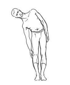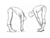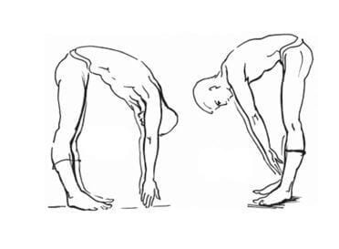 1. Наклоны вперед. Встаньте прямо и наклонитесь вперед так, чтобы пальцы коснулись пола. Лучше всего, чтобы вся ладонь легла на пол. Ноги в коленях при этом не сгибать.