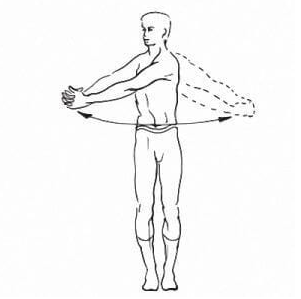 4. Повороты. Встаньте прямо, пальцы рук сцепите на уровне груди. Выполняйте повороты туловища с максимальной амплитудой.