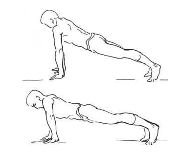 8. Отжимания от дивана/кровати/иной приподнятой над полом поверхности. На иллюстрации - усложненный пример: отжимания от пола.